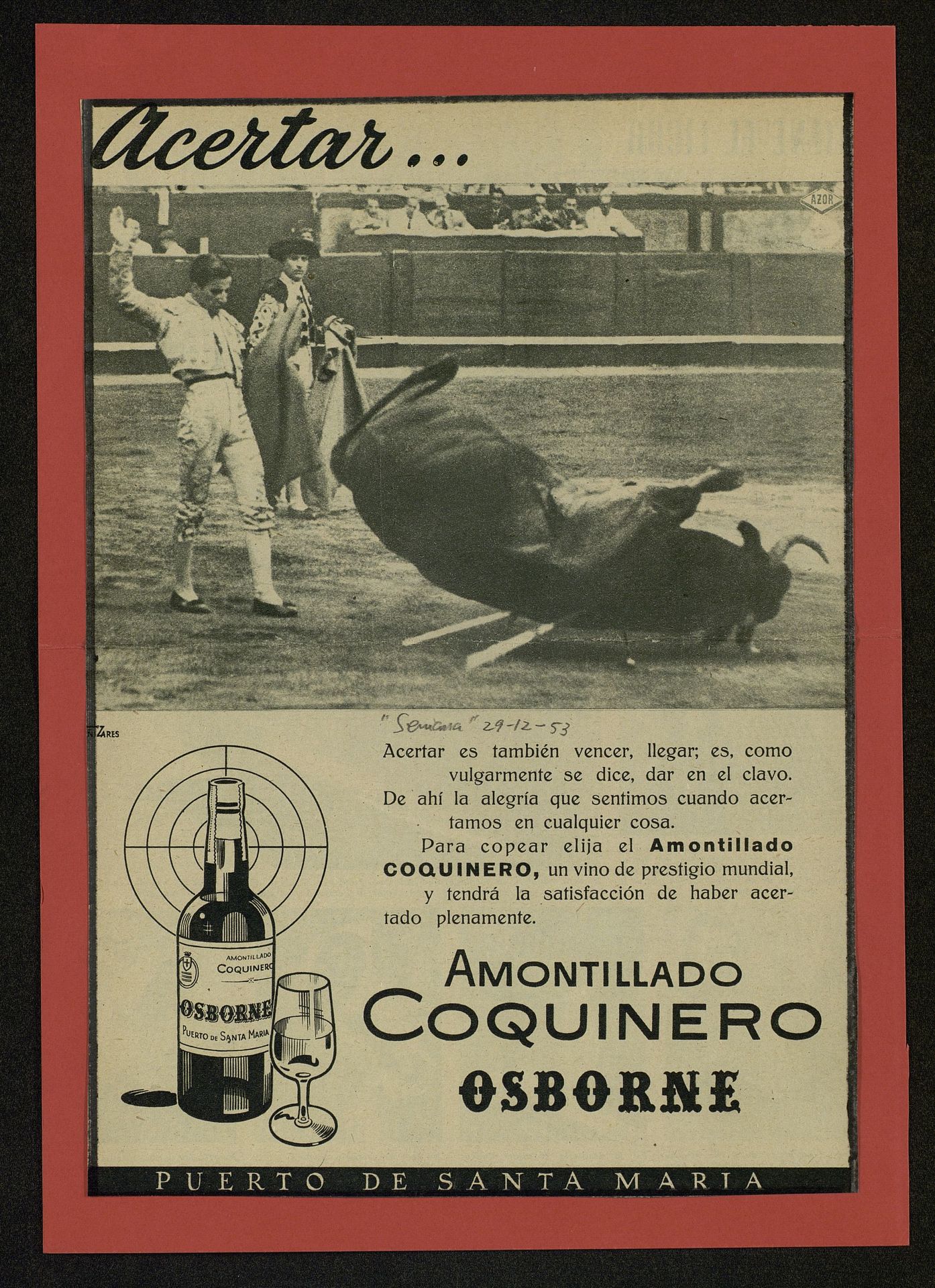 Acertar Amontillado Coquinero. Acertar es también vencer, llegar. Toreros y toro en el ruedo