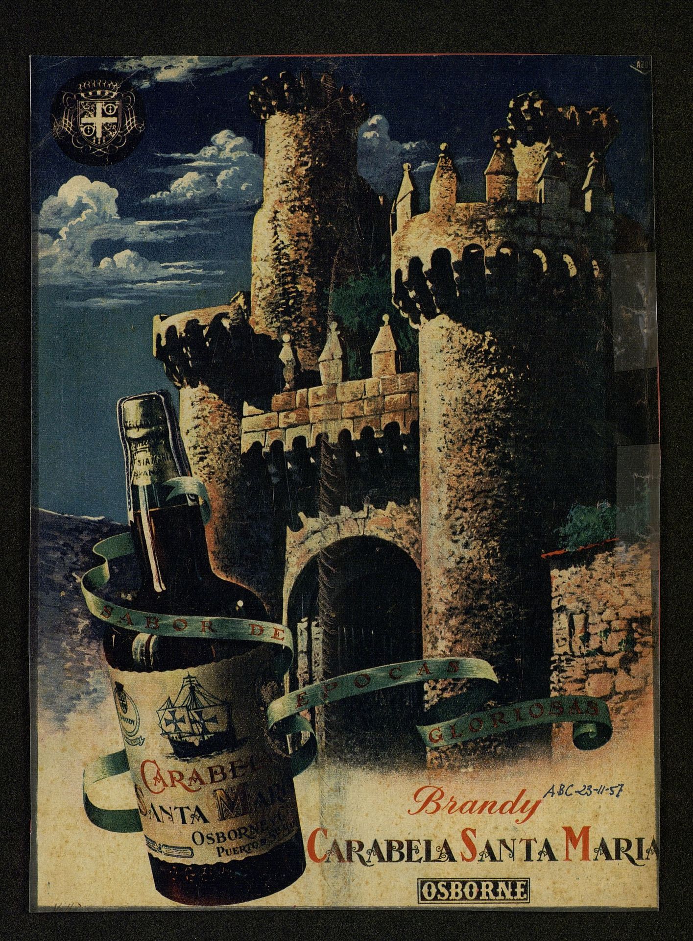 Castillo y botella de Brandy Carabela Santa María