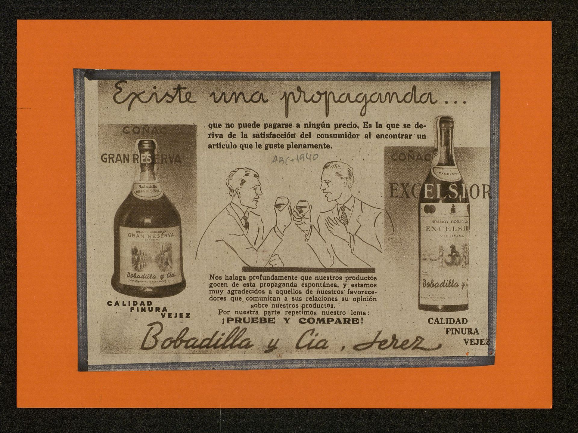 Existe una propaganda... Coñac Reserva y coñac Excelsior Pruebe y compare