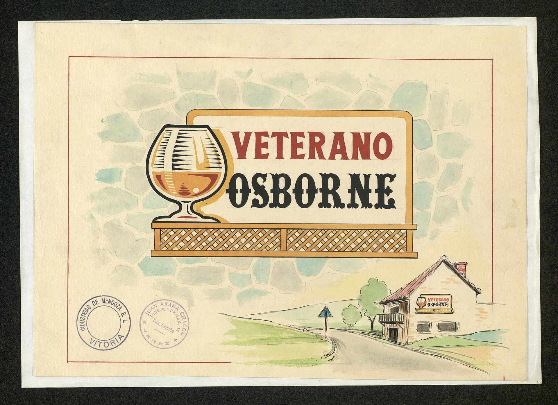 Veterano Osborne. Cartel artístico hecho a mano. El mismo cartel en un caserio Arte final