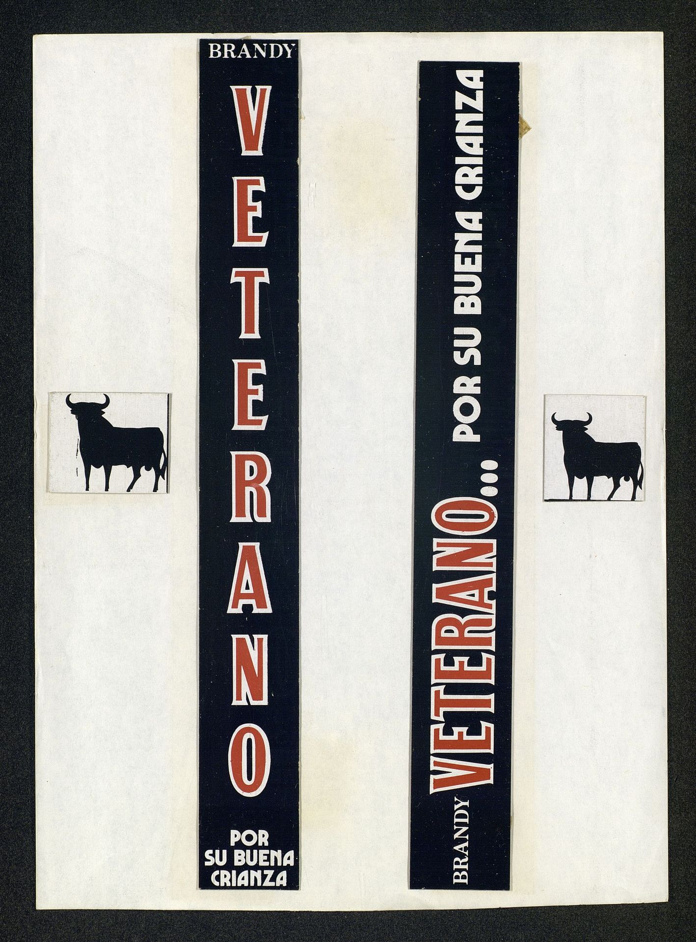 Brandy Veterano ...por su buena crianza. Diseño creativo hecho a mano. Cenefa vertical para hacer cuadrantes en punto de venta Arte final