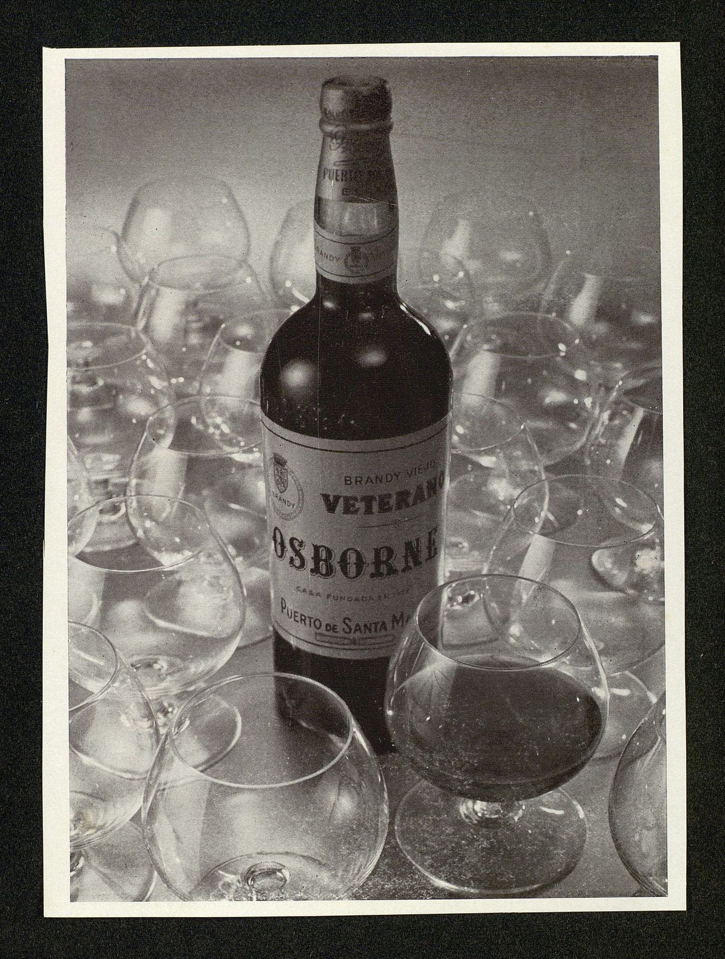 Veterano Osborne. Botella rodeada de muchas copas Arte final