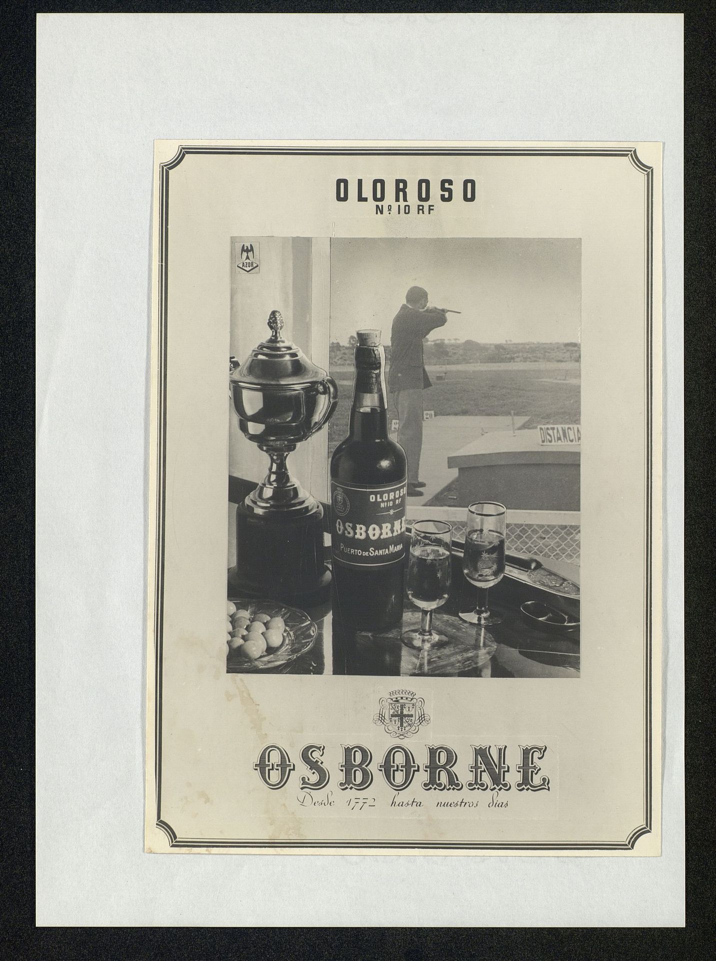 Botella Oloroso N10 RF con copas, plato de aceitunas y de fondo Fotografía