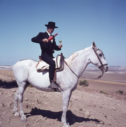 Fino Quinta. Hombre subido a un caballo blanco Diapositiva