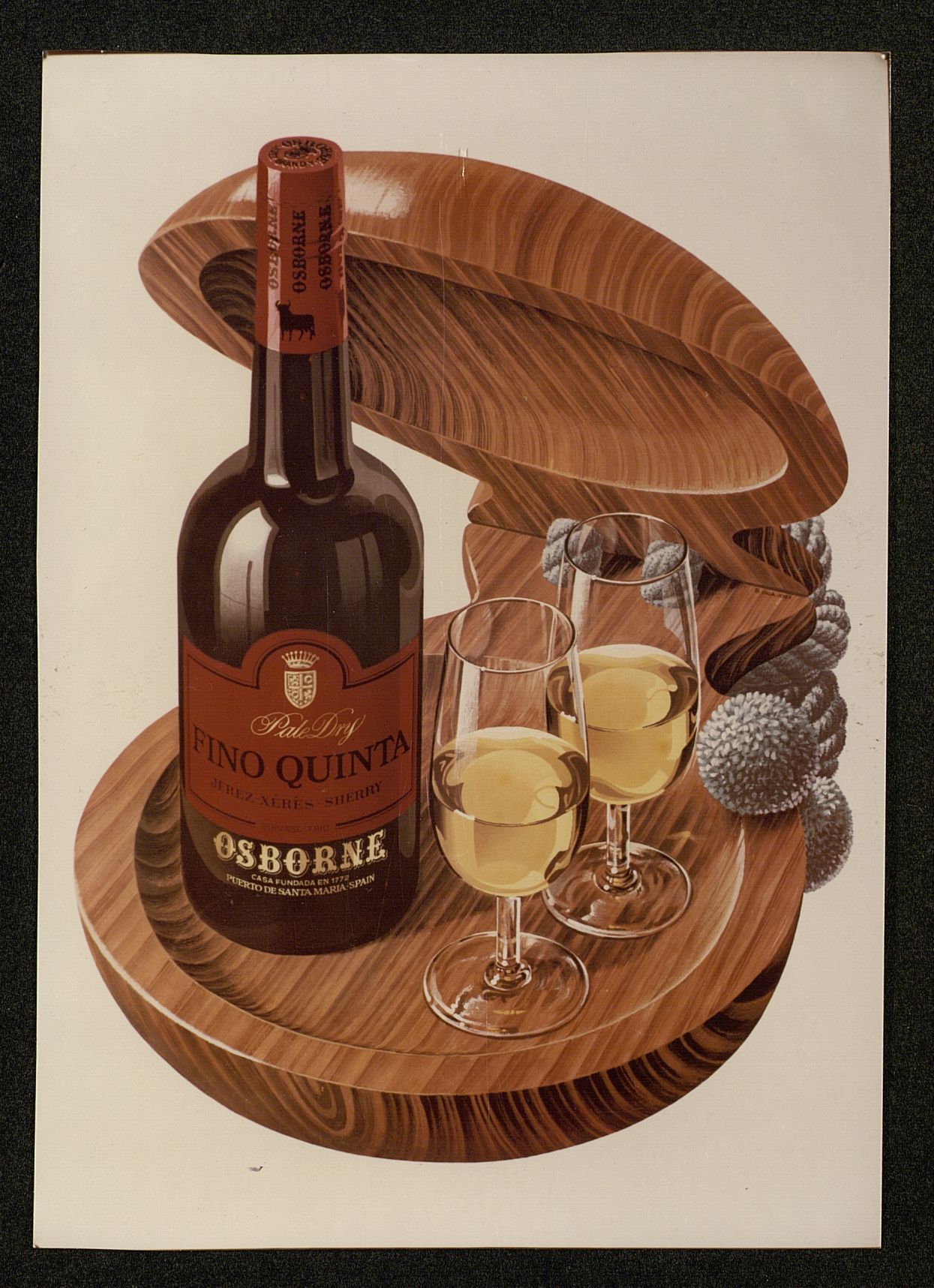 Copas y botella dentro de una castañuela. Fino Quinta Fotografía