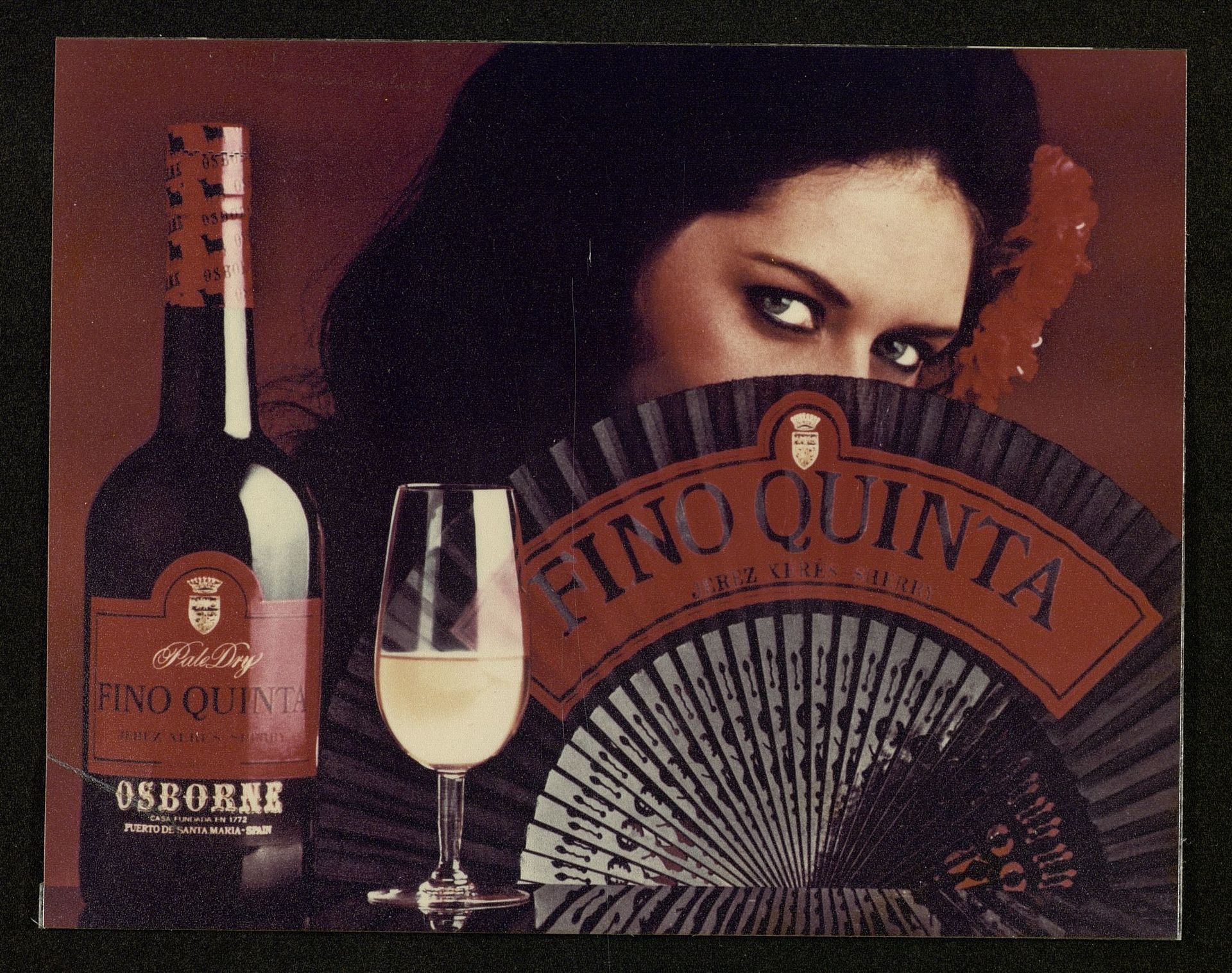 Mujer con abanico y copa y botella Fino Quinta Fotografía