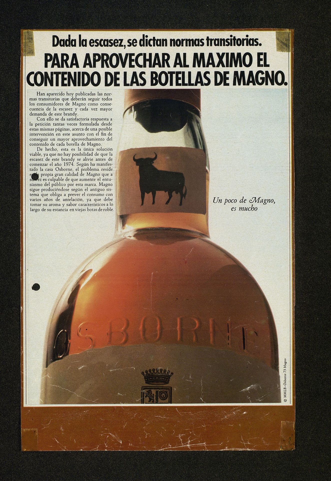 Dada la escasez, se dictan normas transitorias. Para aprovechar al máximo el contenido de las botellas de Magno