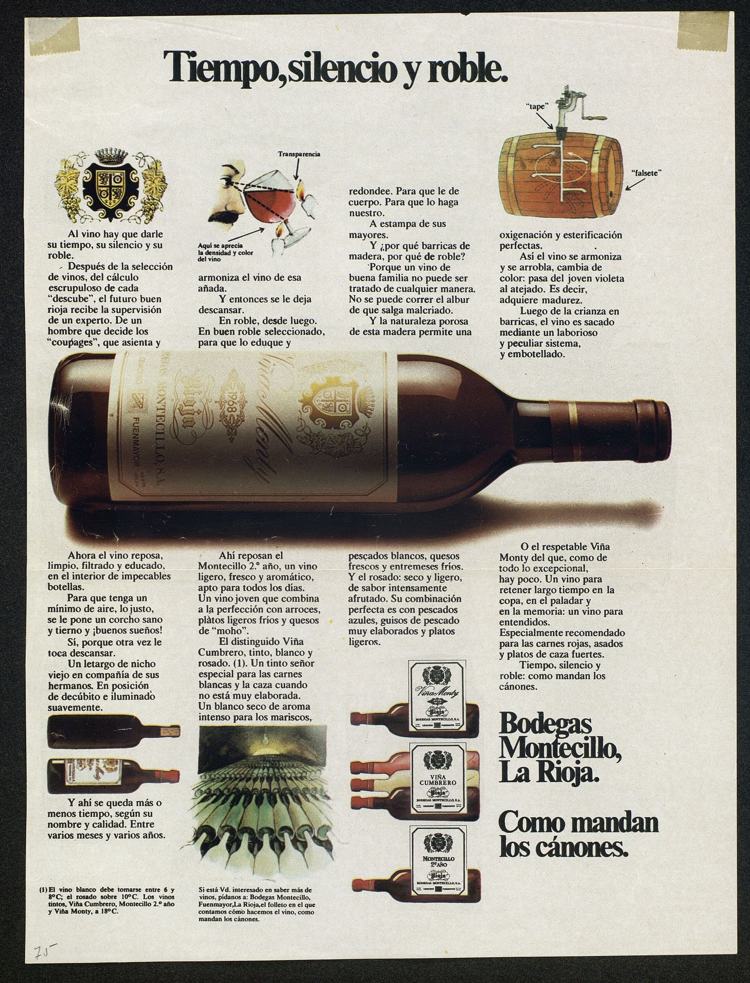 Tiempo, silencio y roble. Ahora el vino reposa, limpio , filtrado y educado...