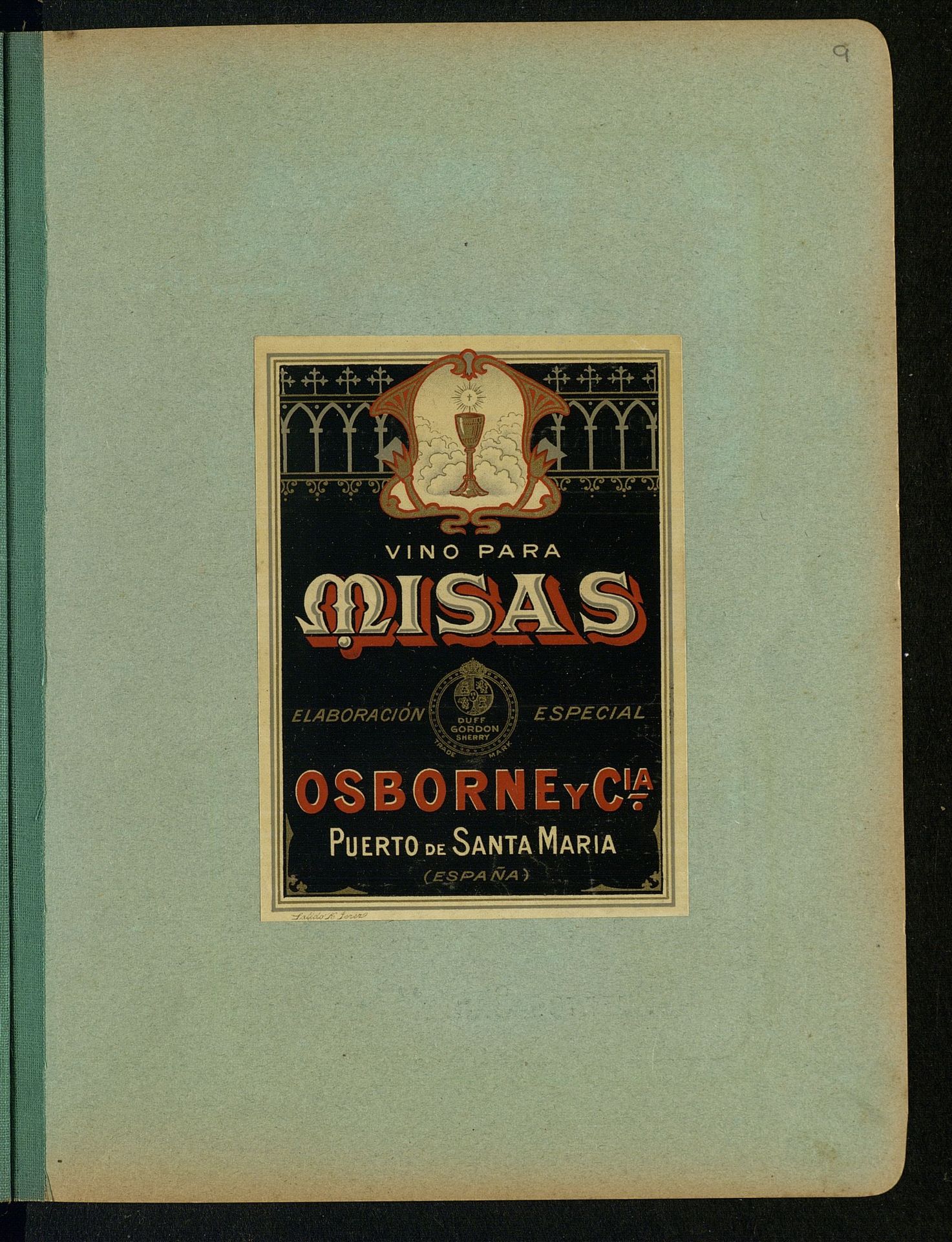 Vino para misas. Elaboración especial. Osborne y Cia. Puerto de Santa María (España)
